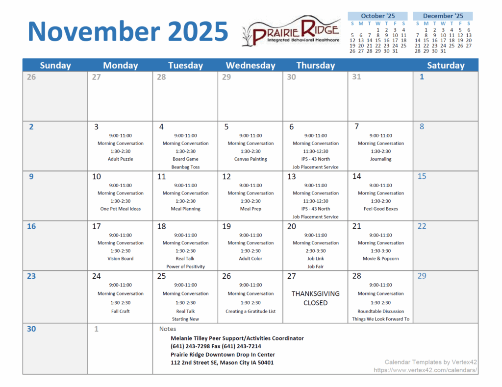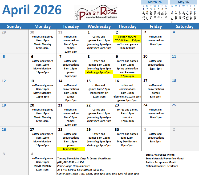 Our Cerro-Gordo county drop-in center is conveniently located in downtown Mason City, IA. Our team of mental health professionals and consultants are ready to help our community members.